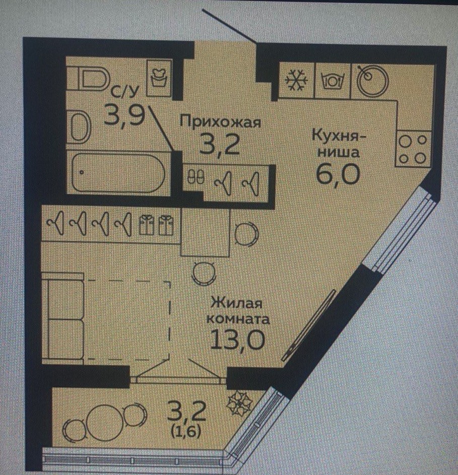 Общая площадь: 36.2м2